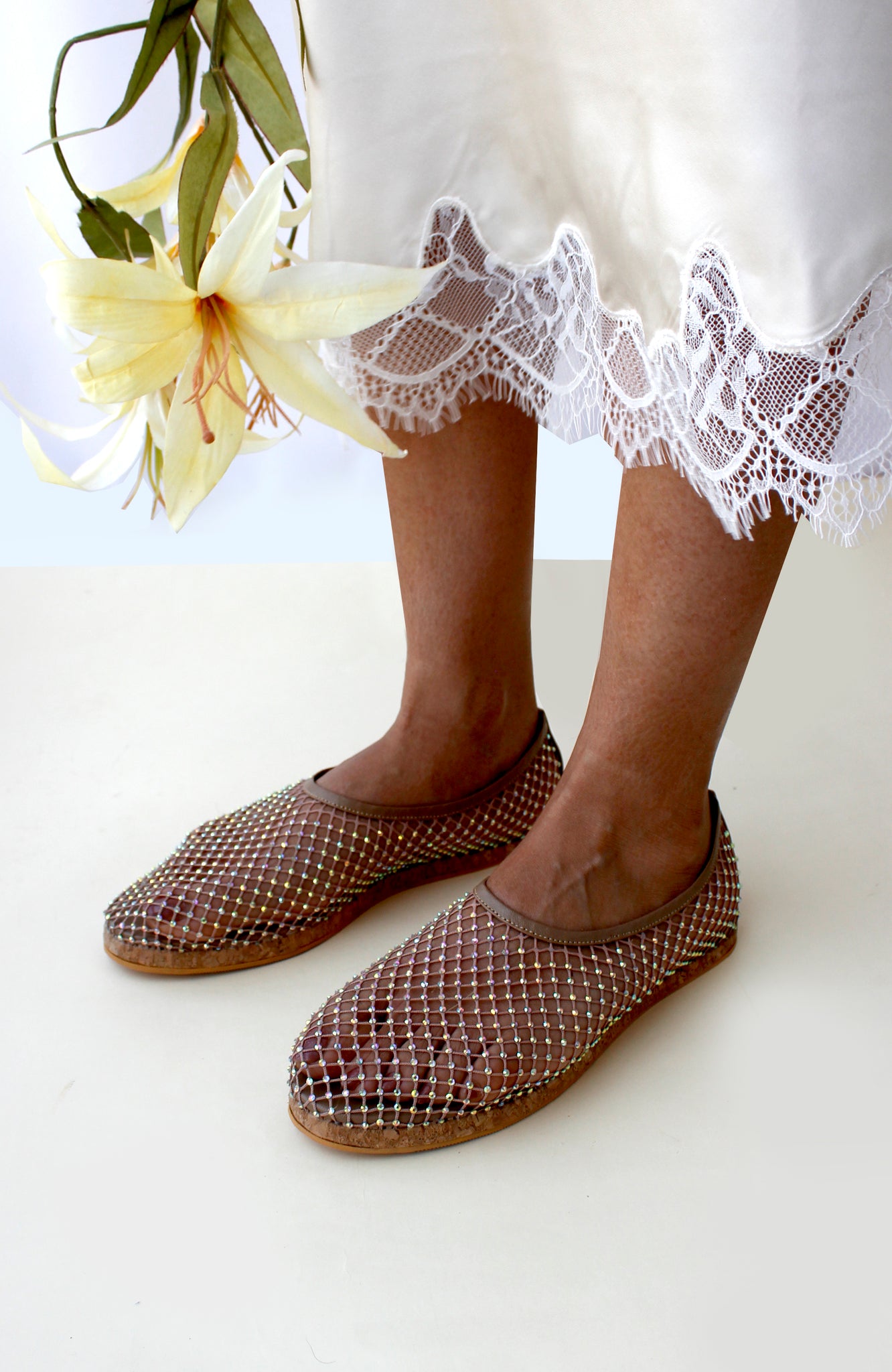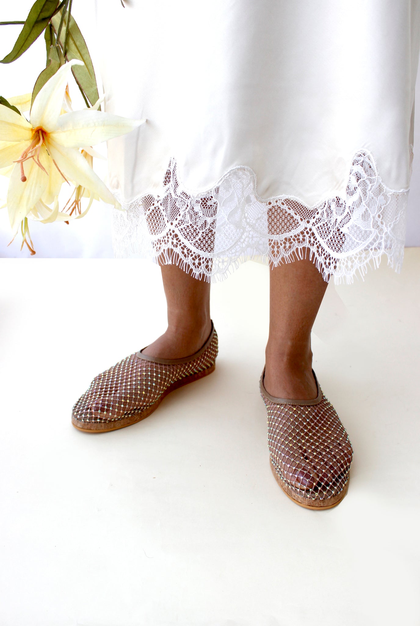 Designed for movement and made to shine, this sock-style mesh silhouette hugs the foot in breathable ease. Finished with fine crystal embellishments, it delivers a refined sparkle without overpowering the clean, modern design.