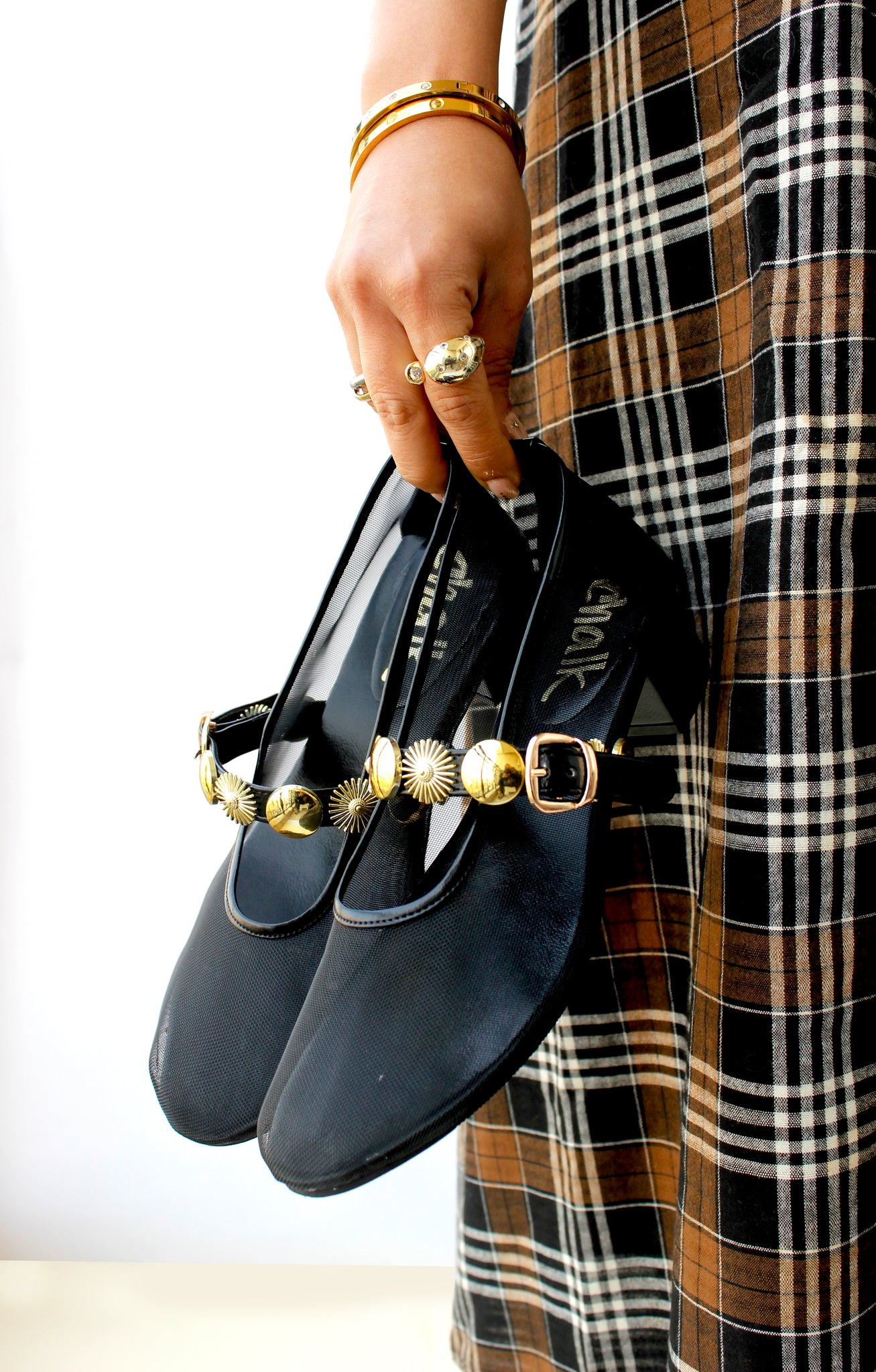 These are super trendy, elevated by gold studded strap set on a black faux leather. They feature a easy to wear style and a comfortable padded insole. Wear in your day or off-duty wardrobe for versatile looks.