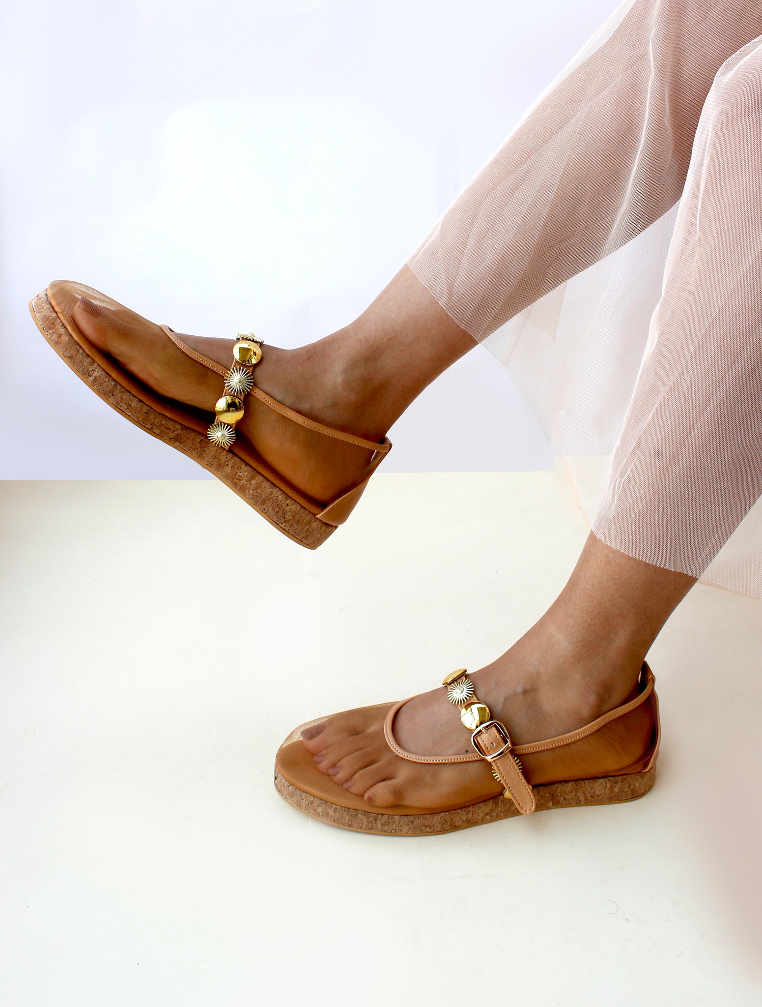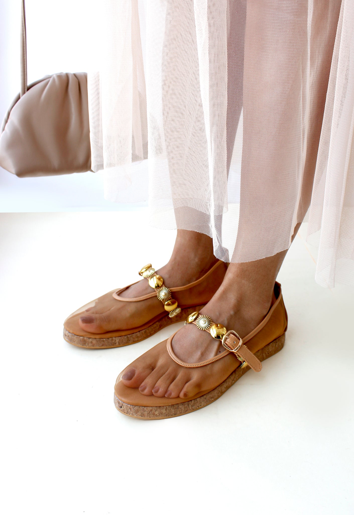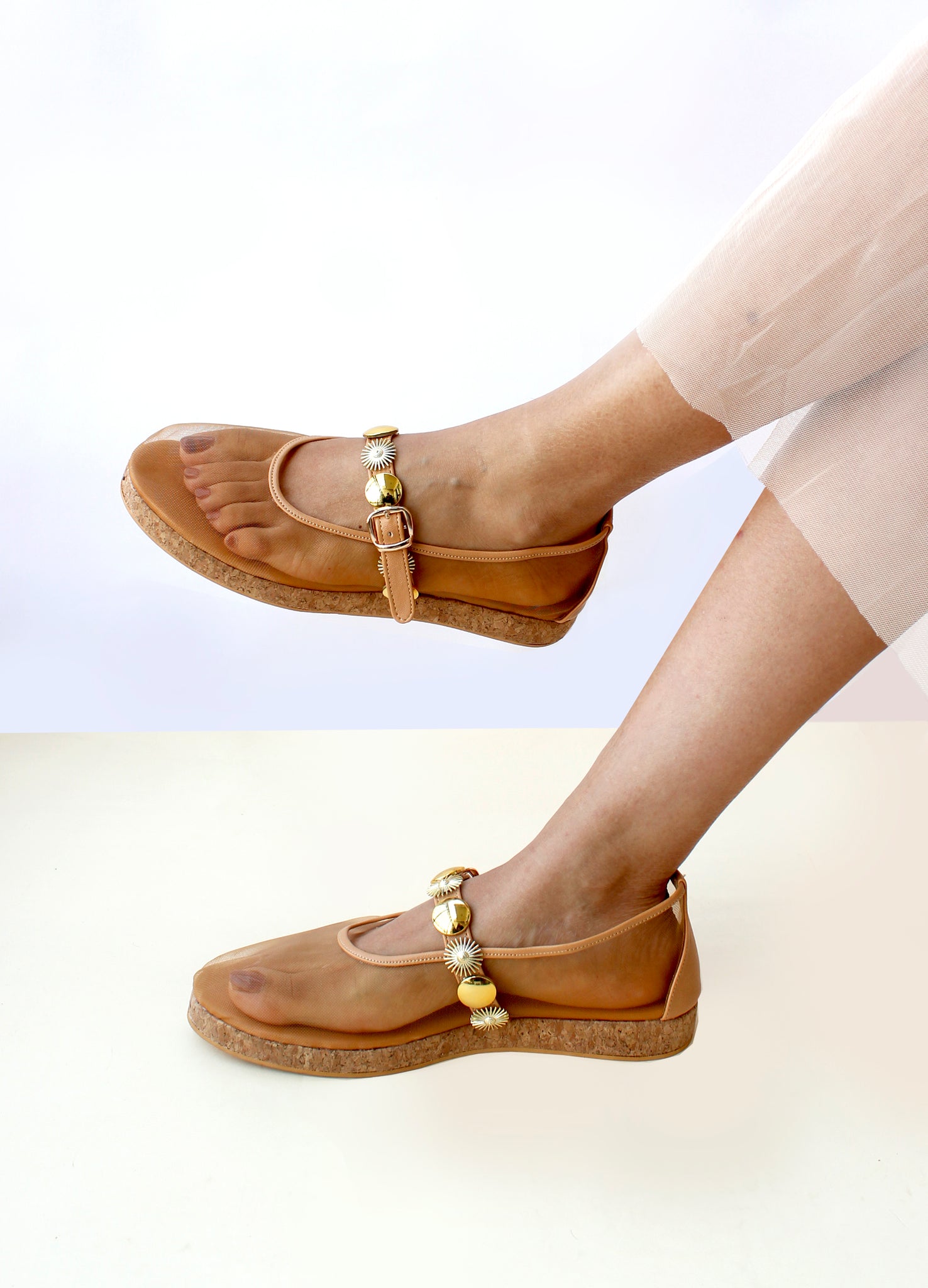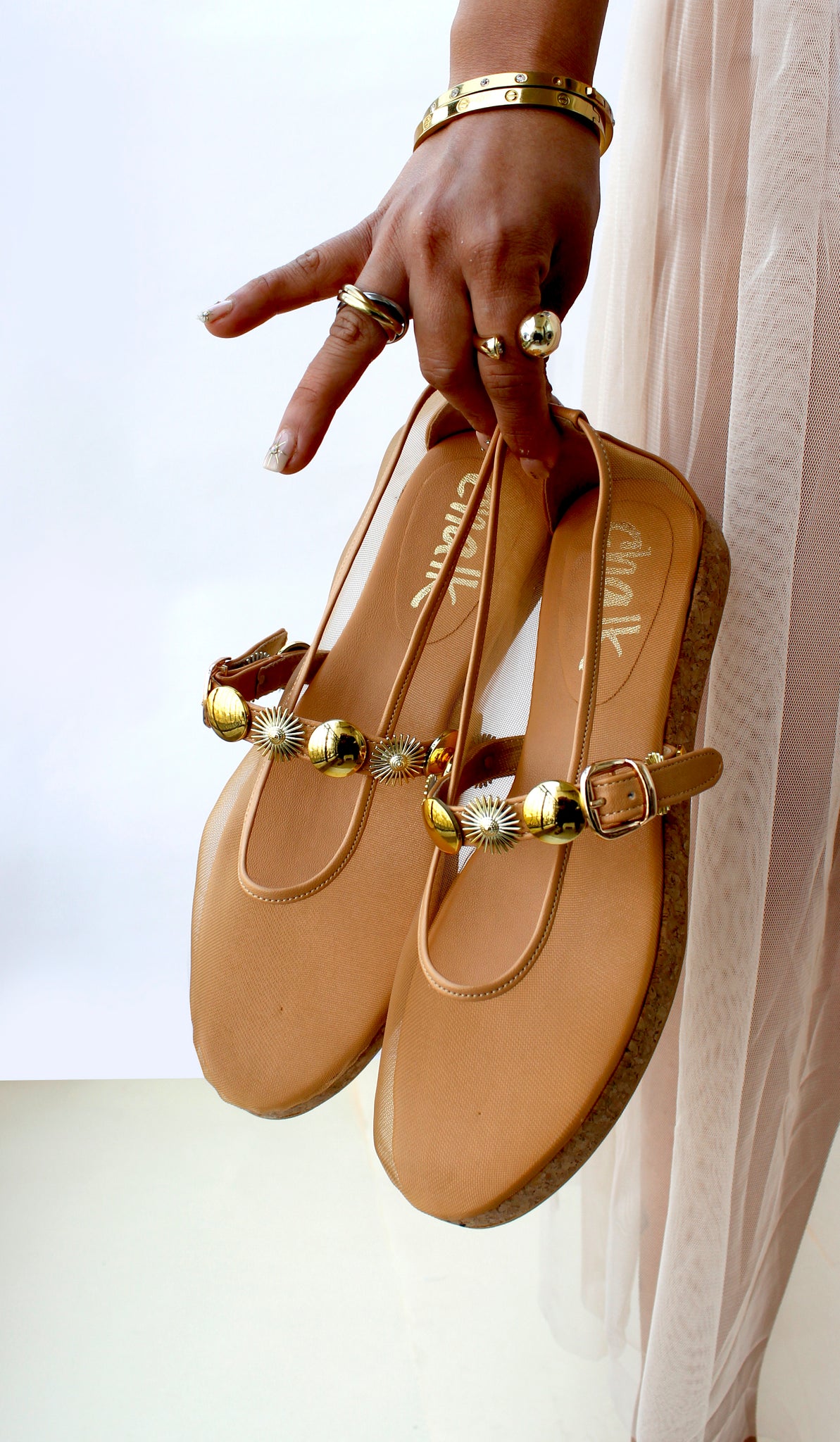 These are super trendy, elevated by gold studded strap set on a natural tan faux leather. They feature a easy to wear style and a comfortable padded insole. Wear in your day or off-duty wardrobe for versatile looks.